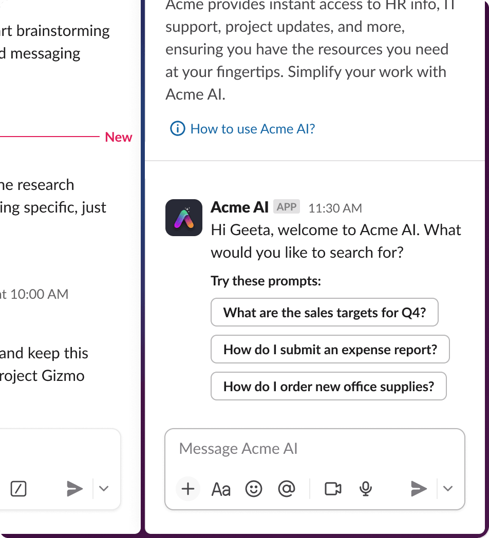 Can't get enough AI in the agent experience? Any user input can be used as input for an LLM query, and the answer can be posted back in Slack. Take these three examples: